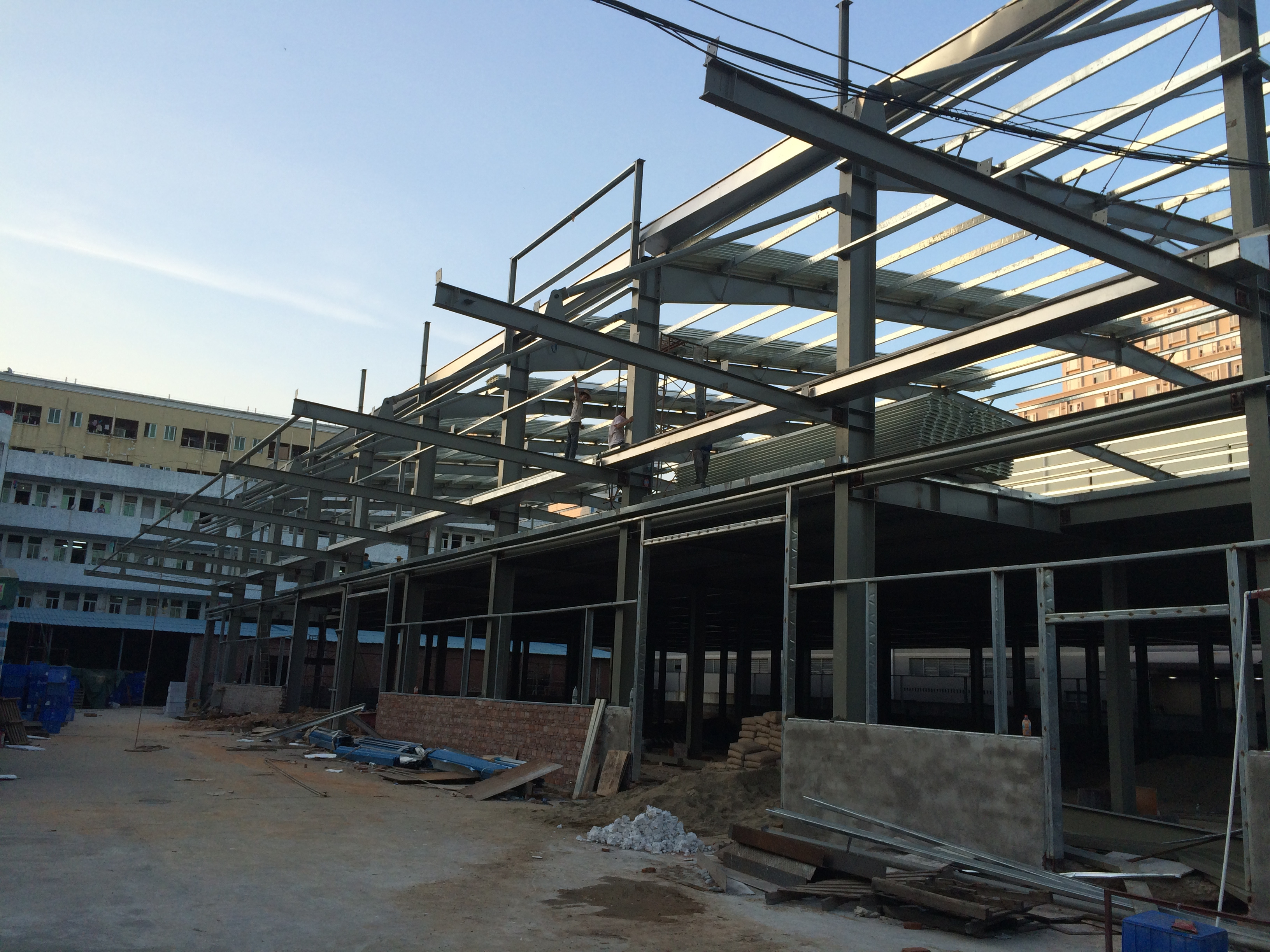 单层钢结构厂房压型金属板安装工业应首先检查好相关的钢构件材质,厚度、防腐性能、奶或性能能够达到要求,选用合适的金属板,确定好板材的加工长度、数量。单层钢结构厂房压型钢板在装卸和安装中严禁用钢丝绳捆绑直接吊装,运输及堆放应有足够的支点,以防变形。压型钢板按图纸放线安装、调直、压实并点焊牢靠;压型钢板铺设完毕,调直固定后,应及时用锁口机进行锁口,以防由于施工材料堆放或人员行走,造成压型钢板咬口分离;压型钢板安装完毕后,进行钢筋铺设前应及时清扫,边角料应分类堆放,钢结构厂房的金属板安装前应进行矫正,以免达不到相应的质量要求。
