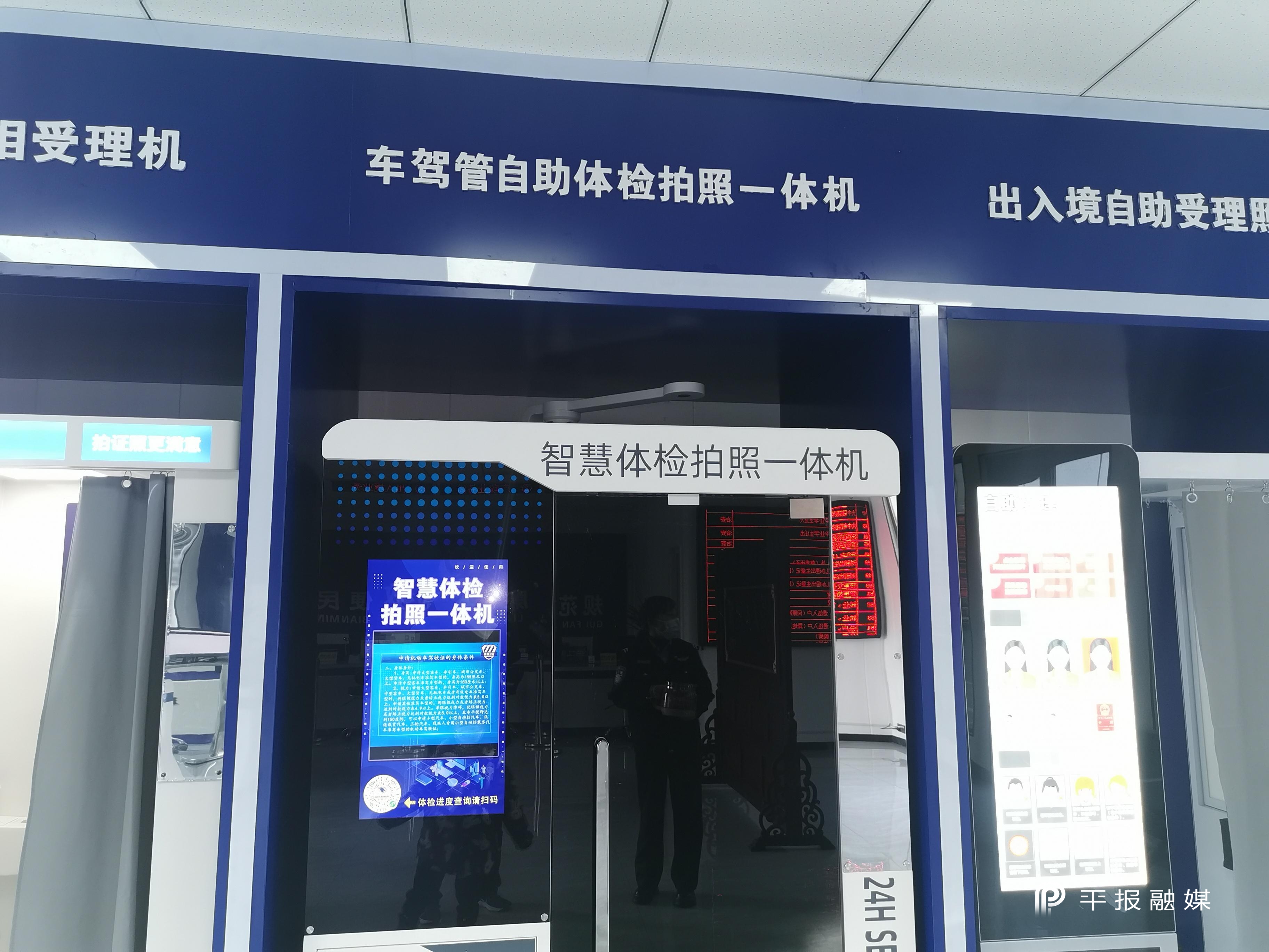 注意到,湖滨智慧警务工作站内摆放着身份证照相受理机、车驾管体检拍照一体机、出入境自助受理照相机、无违法犯罪自助证明机、高拍仪、指纹仪等设备,群众可以在自助设备自己办理业务。