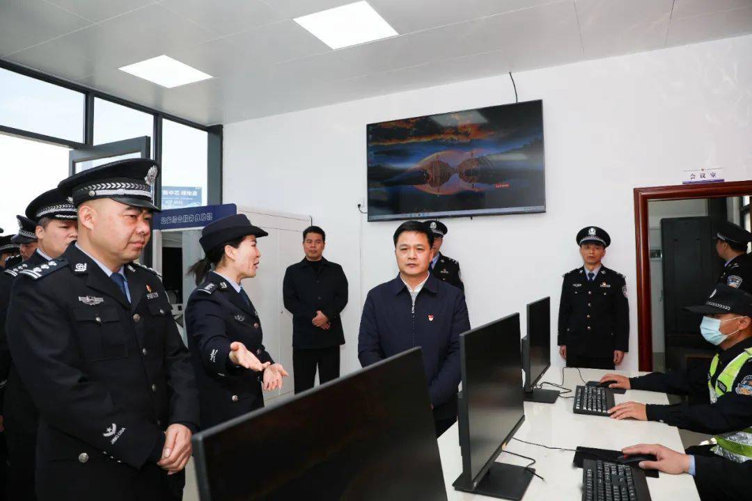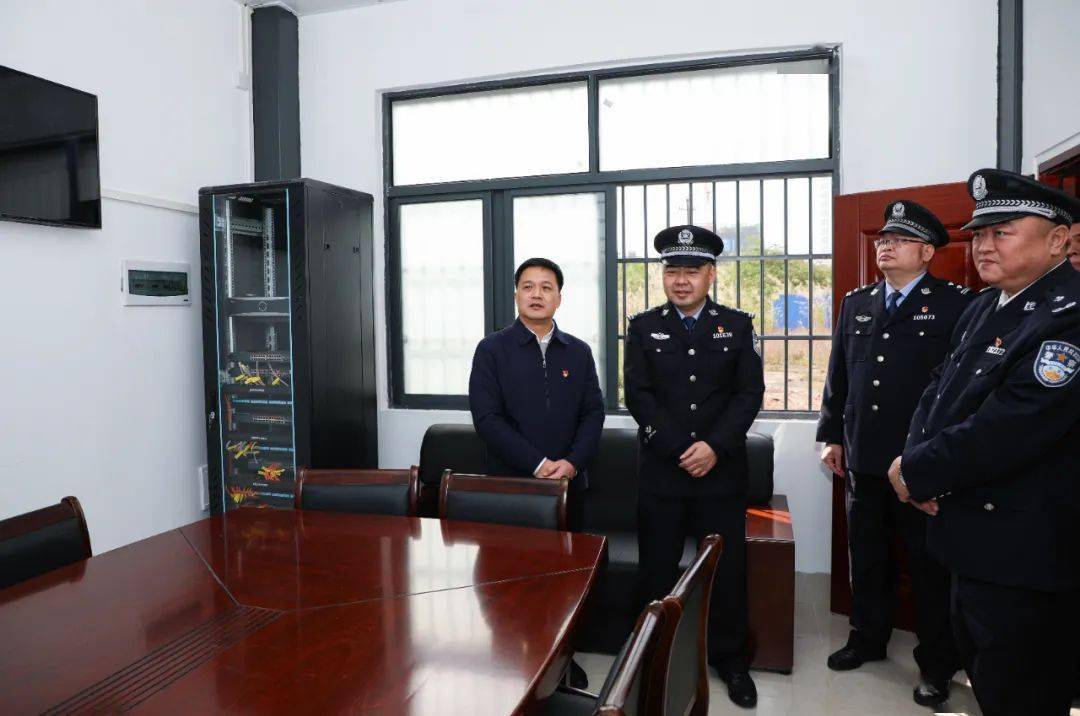 ▲邓均荣、温瀚等领导同志参观了五海警务工作服务站,听取了关于警务工作服务站功能设施、装备配备、便民服务等工作的详细介绍。