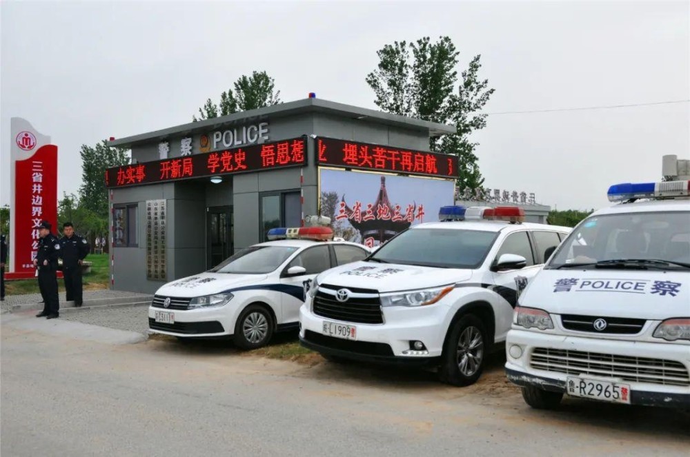 整洁舒适的办公环境,清晰醒目的警务标识,5月6日在安徽省砀山县、江苏省丰县、山东省单县交界处三省井边界文化公园旁边一个特殊的警务站,三省井综合警务站挂牌成立。